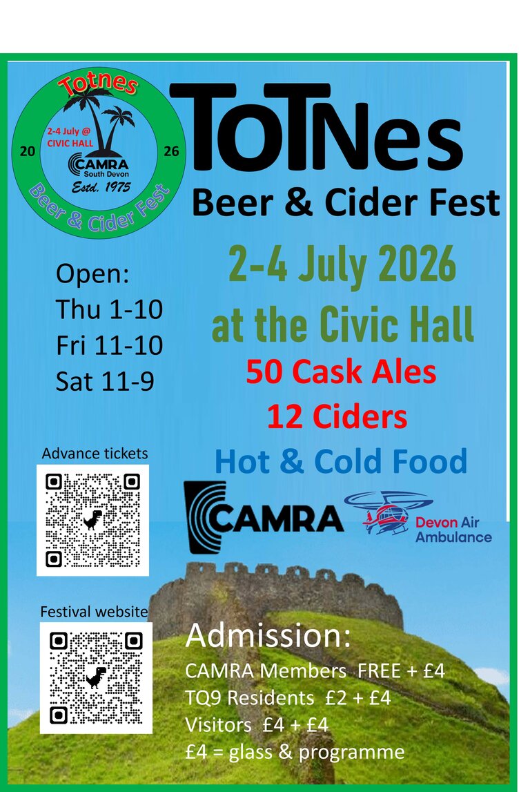 Download this handy bi-fold pamphlet listing the town centre pubs offering cask ales. Hard copies will be available at the festival and are now available in pubs in Totnes