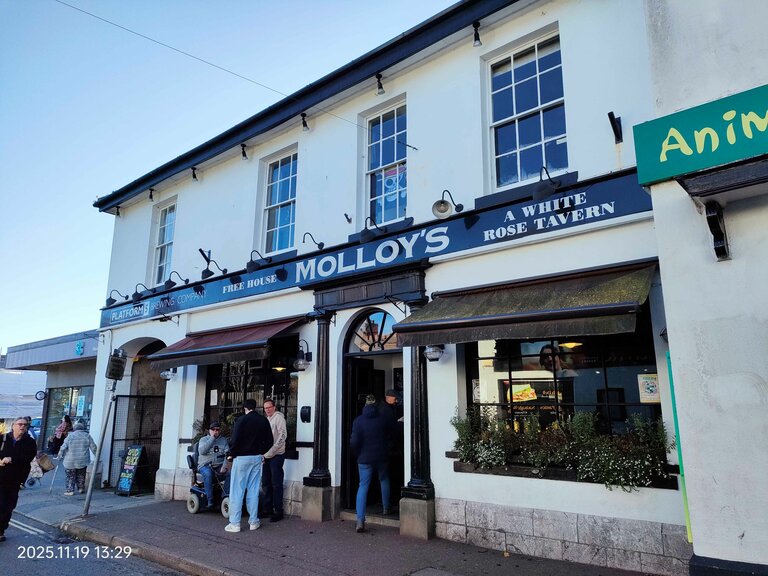 We now walked back past the Dolphin to Molloy's where there were four beers to choose from, Proper Job, Topsail, Devon Dumpling and Utopian Blonde.